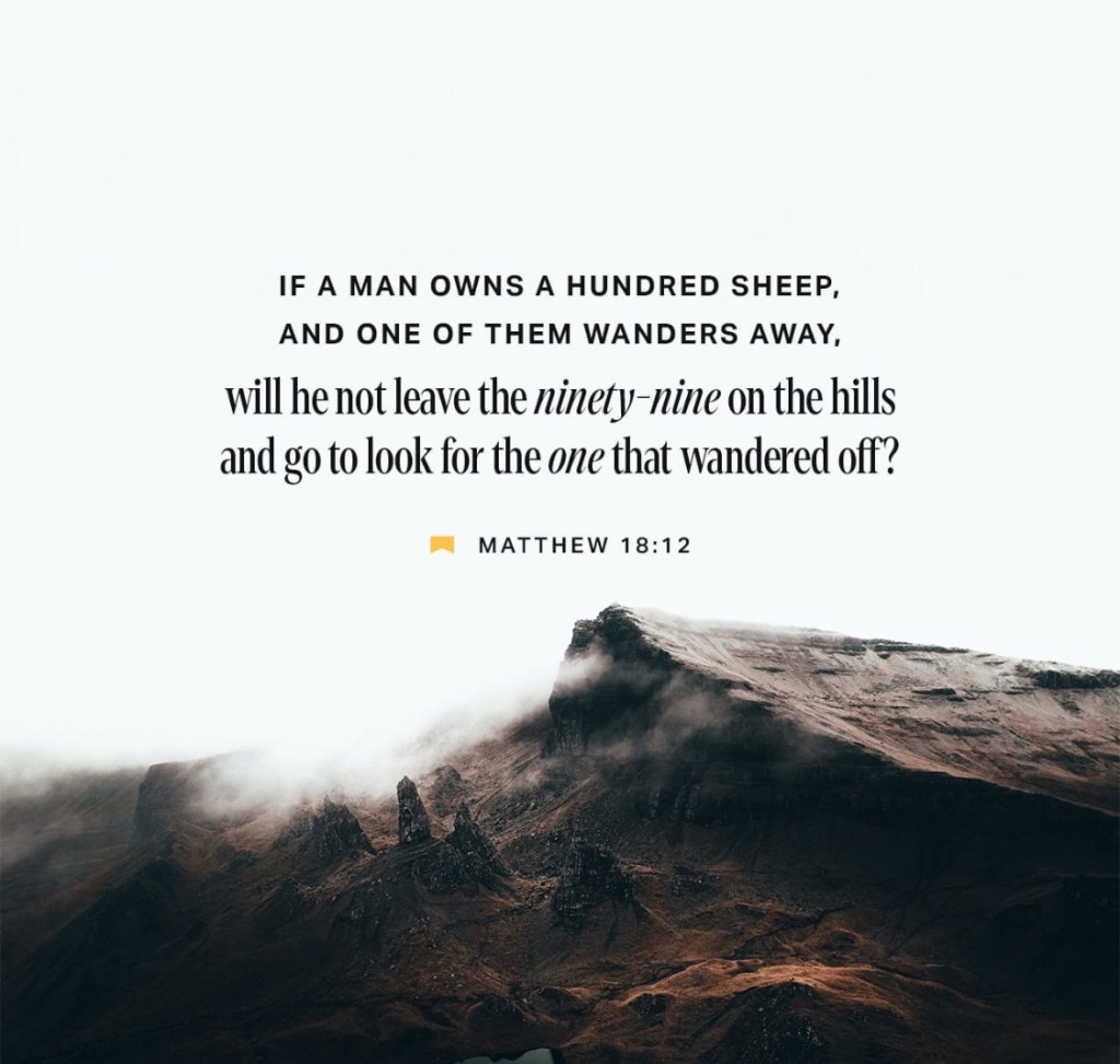 “What do you think? If a man has a hundred sheep, and one of them has gone astray, does he not leave the ninety-nine on the mountains and go in search of the one that went astray?” Matthew 18:12 ESV