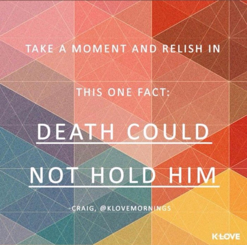 Just when the enemy thought he’d won, the stone began to roll, Jesus rose with a good morning stretch, folded His grave clothes, and placed them on the alter. (My paraphrase)
